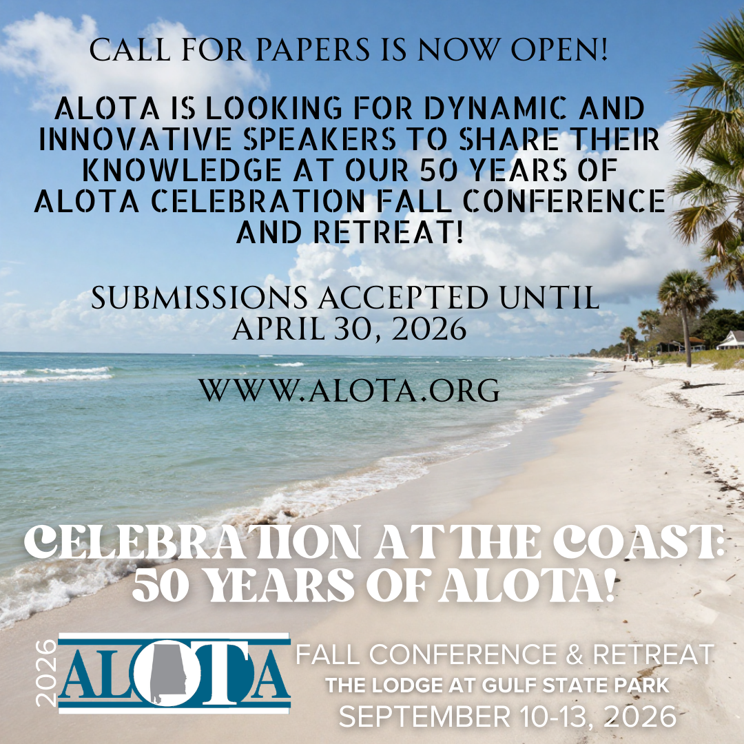 Welcome to ALOTA!The Alabama Occupational Therapy Association (ALOTA) is a member organization. ALOTA is the state-based professional organization and public voice for the occupational therapy profession within Alabama. Members consist of occupational therapists, occupational therapy assistants, occupational therapy students, and corporate sponsors who employ occupational therapy personnel. ALOTA is a state affiliate of the American Occupational Therapy Association (AOTA), which is the national professional association. ALOTA and AOTA share the common goals of working to advance the profession of occupational therapy, the public’s awareness of and access to needed occupational therapy services, and the contributions of occupational therapy to health, wellness, productivity and quality of life.